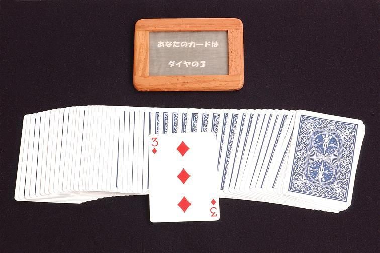 『何も書いていない黒板に文字が現れては消える』不思議な黒板です。 『カードマジックの予言や透視などのミステリアスな演技には欠かせません』。応用範囲の広い「X-フレーム」でお楽しみ下さい。天然木の手触りと内臓された機構を手にされた時、貴方はキット驚嘆されることでしょう。 コレクターズワーカーズショップに採用された記念すべき商品です。貴方のコレクションにぜひどうぞ。 ※カードは付いておりません