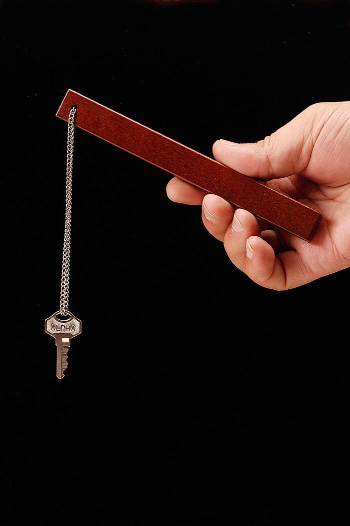 穴が移動するマジックは多数発売されていますが、穴に通したチェーンも同時に移動するマジックは世界に存在しませんでした。 穴に通ったチェーンの改めは勿論、キーホルダーの改めも可能です。 クリエイター豊田聡氏の自信作に惚れ込んで当社が製作いたしました。 現在の作品は写真とは違い、天然くるみ材を使用してさらに重厚になりました。 現象 手に持ったキーホルダーの穴が真ん中へ移動します。勿論キーが通っていることがわかるようにチェーンをまわして見せます。 さらに穴が下のほうに移動します。 チェーンを動かして穴とチェーンが完全に移動していることを示します。数回繰り返すことができます。